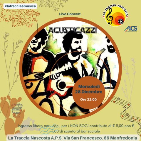 La tradizione vuole, che il 28 Dicembre, dopo le abbuffate di Natale, a Manfredonia si festeggi con il concerto degli Acusticazzi, poiché libera lo spirito e la mente dalla tristezza e dallo stress.