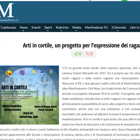 NEWS, parlano di noi, Parlano di noi – “Il centro storico di Manfredonia scenario delle Arti in cortile”