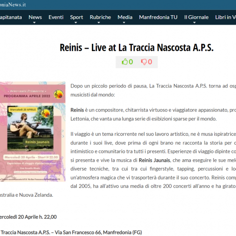 Reinis Jaunais Live at La Traccia Nascosta A.P.S. – 20 Aprile 2022