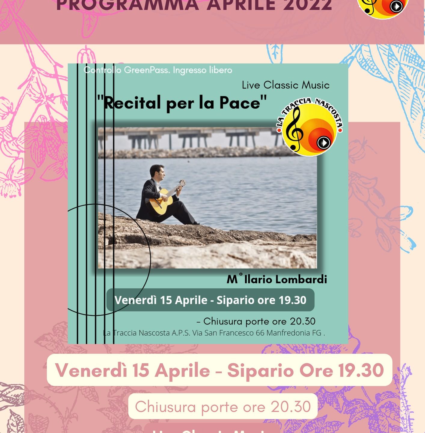 La Traccia Nascosta A.P.S., organizza Venerdì 15 Aprile 2022, “Recital per la Pace” del M° Ilario Lombardi (chitarra classica)
